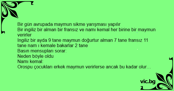 Ingiliz bir ayda 9 tane maymun doğurtur alman 7 tane fransız 11 tane nam ı kemale bakarlar 2 tane