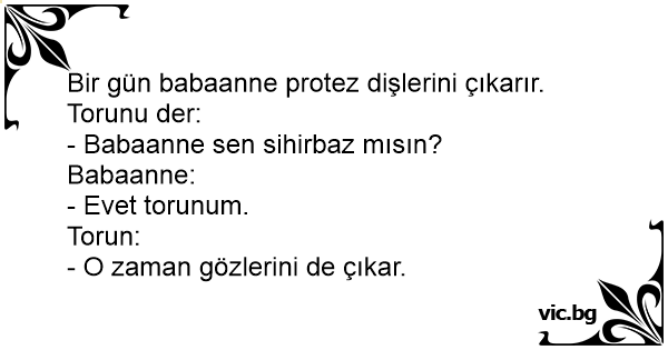 Bir gün babaanne protez dişlerini çıkarır. Torunu der: