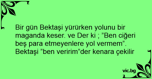 Bir gün Bektaşi yürürken yolunu bir maganda keser. ve Der ki ; ”Ben ciğeri beş para etmeyenlere yol vermem”.