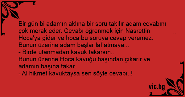 - Al hikmet kavuktaysa sen söyle cevabı..!