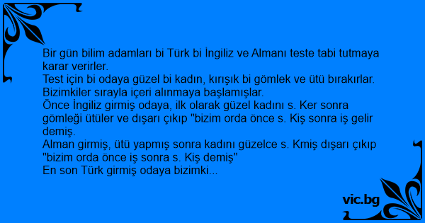 Bir gün bilim adamları bi Türk bi İngiliz ve Almanı теsте tabi tutmaya karar verirler.