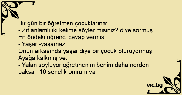 - Zıt anlamlı iki kelime söyler misiniz? diye sormuş.