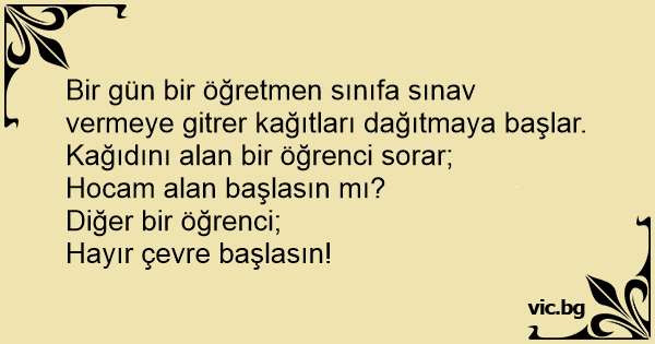 Bir gün bir öğretmen sınıfa sınav vermeye gitrer kağıtları dağıtmaya başlar.