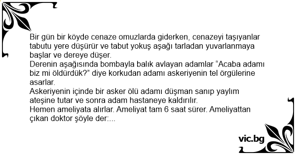 Askeriyenin içinde bir asker ölü adamı düşman sanıp yaylım ateşine tutar ve sonra adam hastaneye kaldırılır.