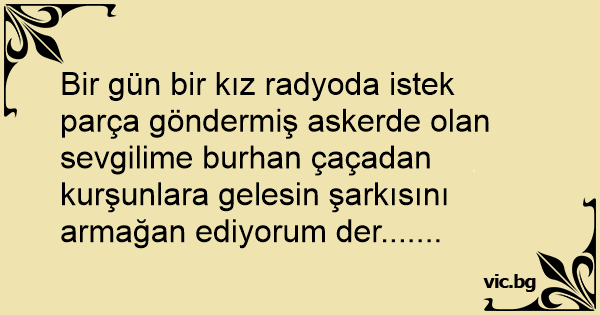 Bir gün bir kız radyoda istek parça göndermiş askerde olan sevgilime burhan çaçadan kurşunlara gelesin şarkısını armağan ediyorum der.......