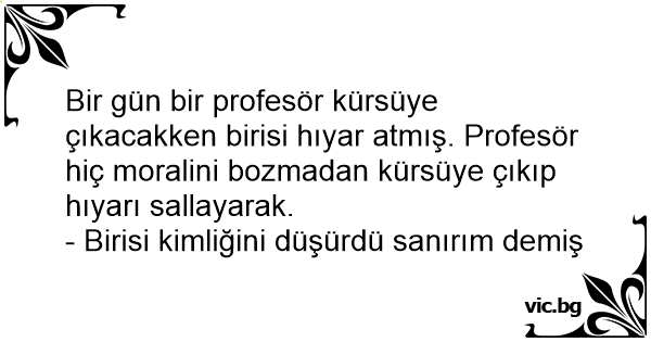Bir gün bir profesör kürsüye çıkacakken birisi hıyar atmış. Profesör hiç moralini bozmadan kürsüye çıkıp hıyarı sallayarak.
