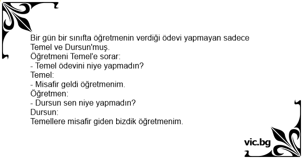 Bir gün bir sınıfta öğretmenin verdiği ödevi yapmayan sadece Temel ve Dursun'muş.