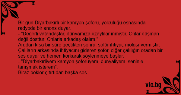 Bir gün Diyarbakırlı bir kamyon şoförü, yolculuğu esnasında radyoda bir anons duyar.