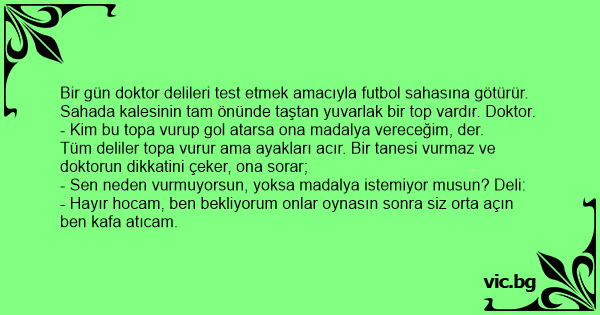 Tüm deliler тора vurur ama ayakları acır. Bir tanesi vurmaz ve doktorun dikkatini çeker, ona sorar;