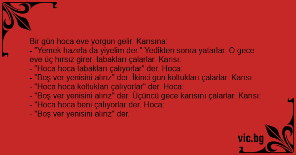 - "Hoca hoca beni çalıyorlar der. Hoca: