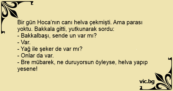 Bir gün Hoca’nın canı helva çekmişti. Ama parası yoktu. Bakkala gitti, yutkunarak sordu: