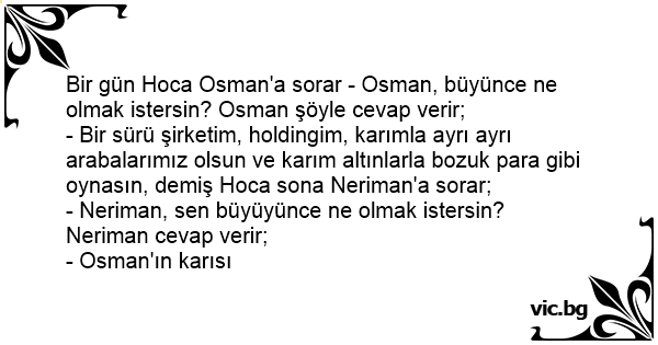Bir gün Hoca Osman'a sorar - Osman, büyünce ne olmak istersin? Osman şöyle cevap verir;