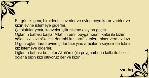 Oğlanın babası başlar Allah’ın emri peygamberin kalbi ile bizim oğlan sizi kızı s*kecek der tabi kız tarafı küplere biner vermez kızı.