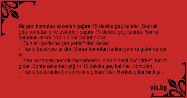 - "Tankı beceriyorlar der. Sonra komutan tankın yanına gider ve der ki: