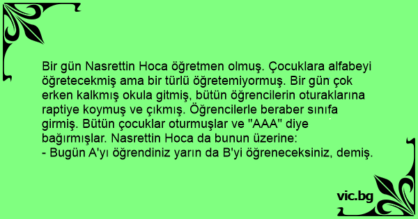 - Bugün A'yı öğrendiniz yarın da B'yi öğreneceksiniz, demiş.