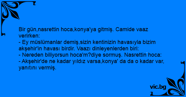 - Ey müslümanlar demiş,sizin kentinizin havasıyla bizim akşehir'in havası birdir. Vaazı dinleyenlerden biri: