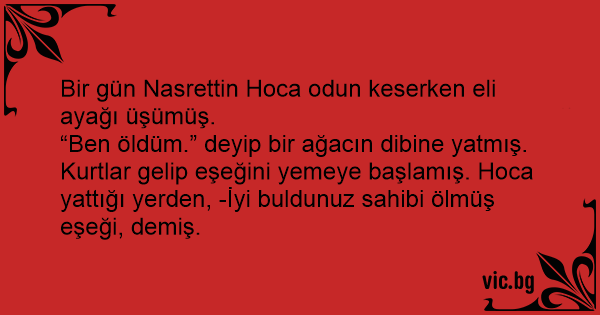 Kurtlar gelip eşeğini yemeye başlamış. Hoca yattığı yerden, -İyi buldunuz sahibi ölmüş eşeği, demiş.