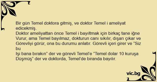 Bir gün Temel doktora gitmiş, ve doktor Temel i ameliyat edicekmiş.