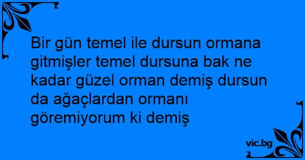 Bir gün temel ile dursun ormana gitmişler temel dursuna bak ne kadar güzel orman demiş dursun da ağaçlardan ormanı göremiyorum ki demiş
