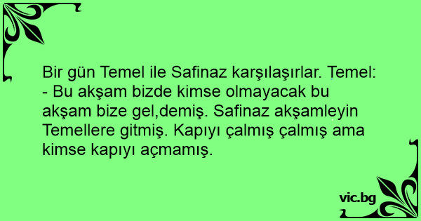 - Bu akşam bizde kimse olmayacak bu akşam bize gel,demiş. Safinaz akşamleyin Temellere gitmiş. Kapıyı çalmış çalmış ama kimse kapıyı açmamış.