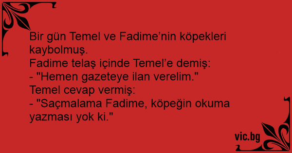 - "Saçmalama Fadime, köpeğin okuma yazması yok ki."