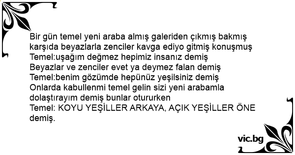 Bir gün temel yeni araba almış galeriden çıkmış bakmış karşıda beyazlarla zenciler kavga ediyo gitmiş konuşmuş