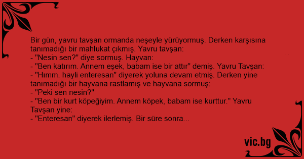 - "Ben katırım. Annem eşek, babam ise bir attır" demiş. Yavru Tavşan: