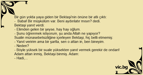 Bir gün yolda yaya giden bir Bektaşi'nin önüne bir atlı çıktı: