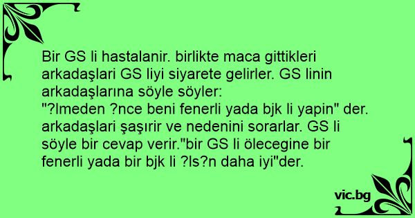 Bir GS li hastalanir. birlikte maca gittikleri arkadaşlari GS liyi siyarete gelirler. GS linin arkadaşlarına söyle söyler: