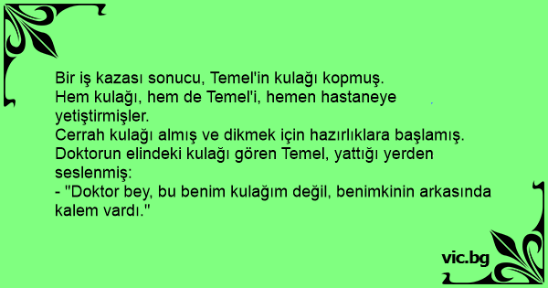 - "Doktor bey, bu benim kulağım değil, benimkinin arkasında kalem vardı."