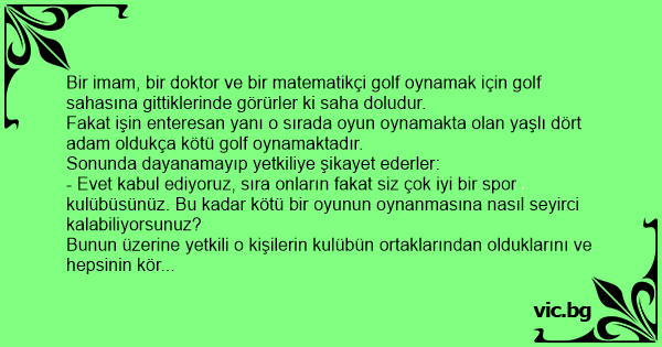 Bir imam, bir doktor ve bir matematikçi golf oynamak için golf sahasına gittiklerinde görürler ki saha doludur.