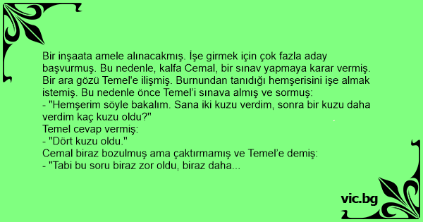 - "Hemşerim söyle bakalım. Sana iki kuzu verdim, sonra bir kuzu daha verdim kaç kuzu oldu?"