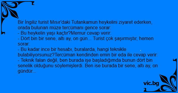 Bir İngiliz turist Mısır'daki Tutankamun heykelini ziyaret ederken, orada bulunan müze tercümanı gence sorar: