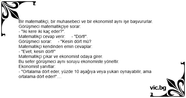 Bir matematikçi, bir muhasebeci ve bir ekonomist aynı işe başvururlar.