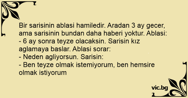 - 6 ay sonra teyze olacaksin. Sarisin kız aglamaya baslar. Ablasi sorar: