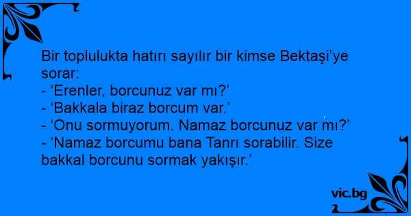 - ‘Namaz borcumu bana Tanrı sorabilir. Size bakkal borcunu sormak yakışır.’