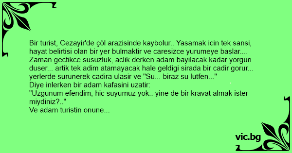 Ve adam turistin onune rengarenk bir duzine kravat koyar.... Turist bunun uzerine cilgina doner: