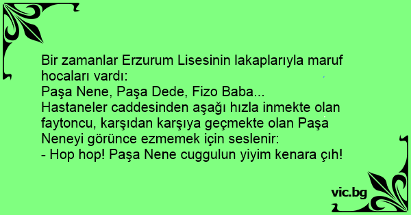 Hastaneler caddesinden aşağı hızla inmekte olan faytoncu, karşıdan karşıya geçmekte olan Paşa Neneyi görünce ezmemek için seslenir: