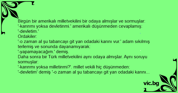 '-devletim' demiş '-o zaman al şu tabancayı giт yan odadaki karını vur.'