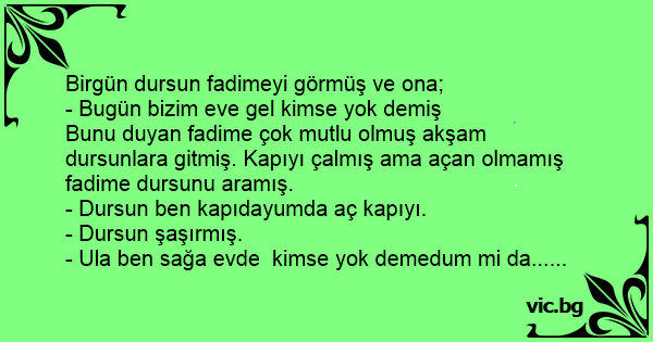 Bunu duyan fadime çok mutlu olmuş akşam dursunlara gitmiş. Kapıyı çalmış ama açan olmamış fadime dursunu aramış.