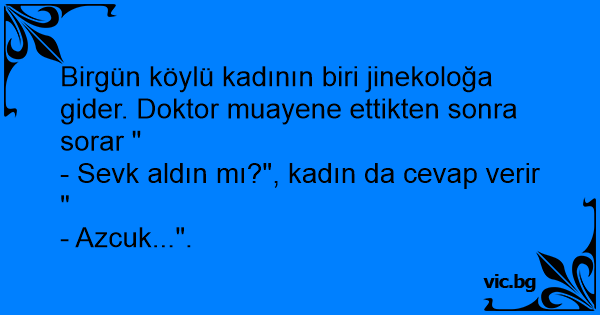 Birgün köylü kadının biri jinekoloğa gider. Doktor muayene ettikten sonra sorar "