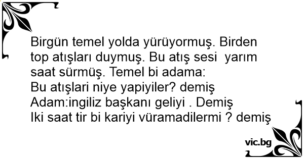 Birgün temel yolda yürüyormuş. Birden top atışları duymuş. Bu atış sesi yarım saat sürmüş. Temel bi adama: