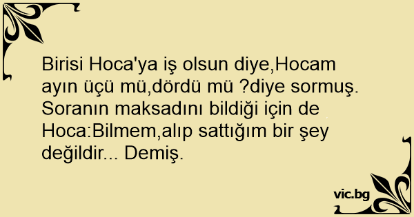 Birisi Hoca'ya iş olsun diye,Hocam ayın üçü mü,dördü mü ?diye sormuş.