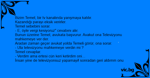 Bunun üzerine Temel, avukata başvurur. Avakut ona Televizyonu mahkemeye ver der.