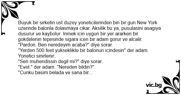 "Cunku yerden 500 feet yukseklikte bir balonun icinde kaybolmussun.