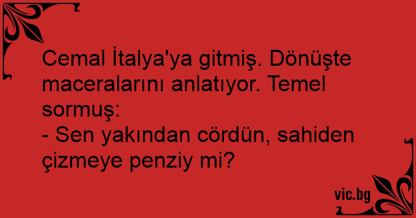 Cemal İtalya'ya gitmiş. Dönüşte maceralarını anlatıyor. Temel sormuş: