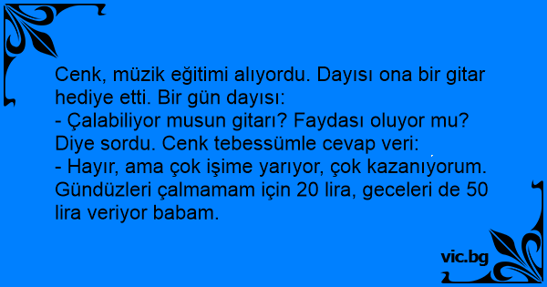 Cenk, müzik eğitimi alıyordu. Dayısı ona bir gitar hediye etti. Bir gün dayısı: