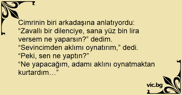 “Zavallı bir dilenciye, sana yüz bin lira versem ne yaparsın?” dedim.