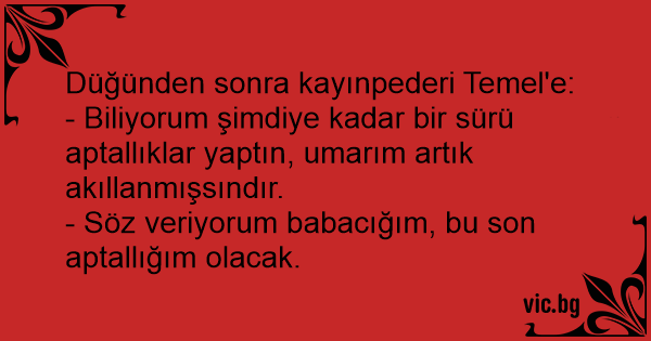 Düğünden sonra kayınpederi Temel'e: