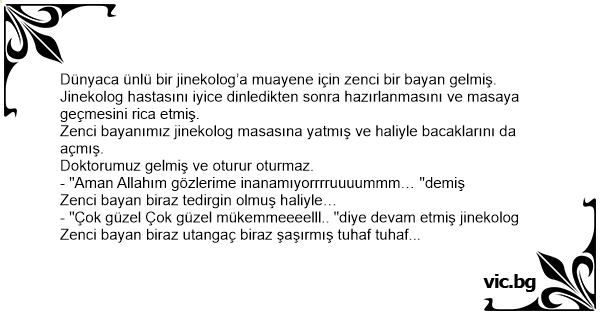 Dünyaca ünlü bir jinekolog’a muayene için zenci bir bayan gelmiş.